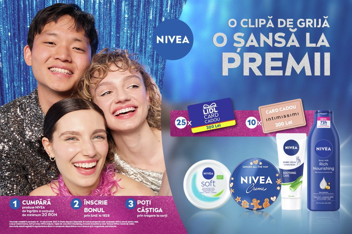Permanent îți pregătim promoții care să îți ofere șansa să te bucuri de cea mai bună îngrijire NIVEA, dar și să câștigi premii surprinzătoare. Ca să fii mereu la curent cu campaniile promoționale pe care le desfășurăm, te invităm să verifici periodic această pagină.