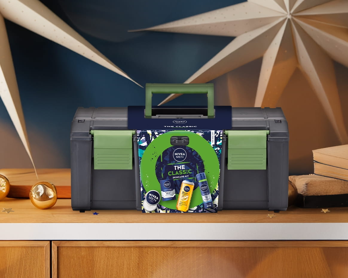 Dăruiește un cadou special: setul NIVEAMEN Toolbox The Classic format din Crema multifuncțională NIVEAMEN CRÈME, Gelul pentru ras NIVEAMENPROTECT & CARE, Balsamul după ras NIVEAMENPROTECT & CARE și Gel de duș NIVEAMENACTIVE ENERGY.