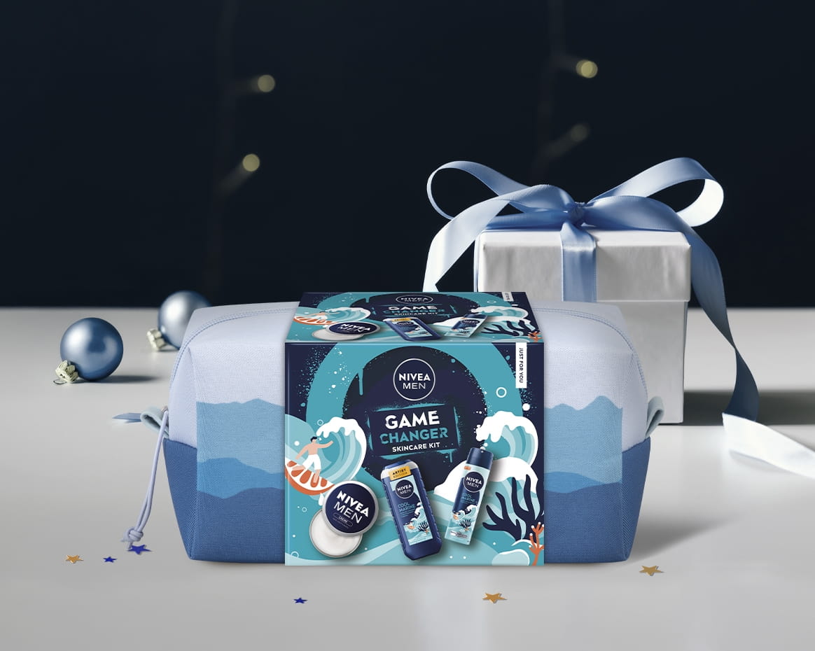 Dăruiește un cadou special: setul NIVEAMEN GAME CHANGER BAG format din Crema multifunctională NIVEAMEN Crème în ediție limitată, Gelul de duș NIVEAMENCOOL MARINE în ediție limitată și Deodorantul spray NIVEAMENCOOL MARINE în ediție limitată.