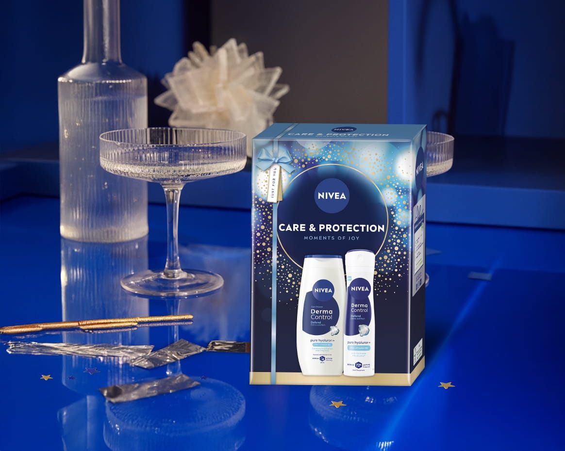 Dăruiește un cadou special: setul NIVEA Derma Control format din Gelul de duș NIVEA Derma Control Defend și Antiperspirantul Spray NIVEA Derma Control Defend.
