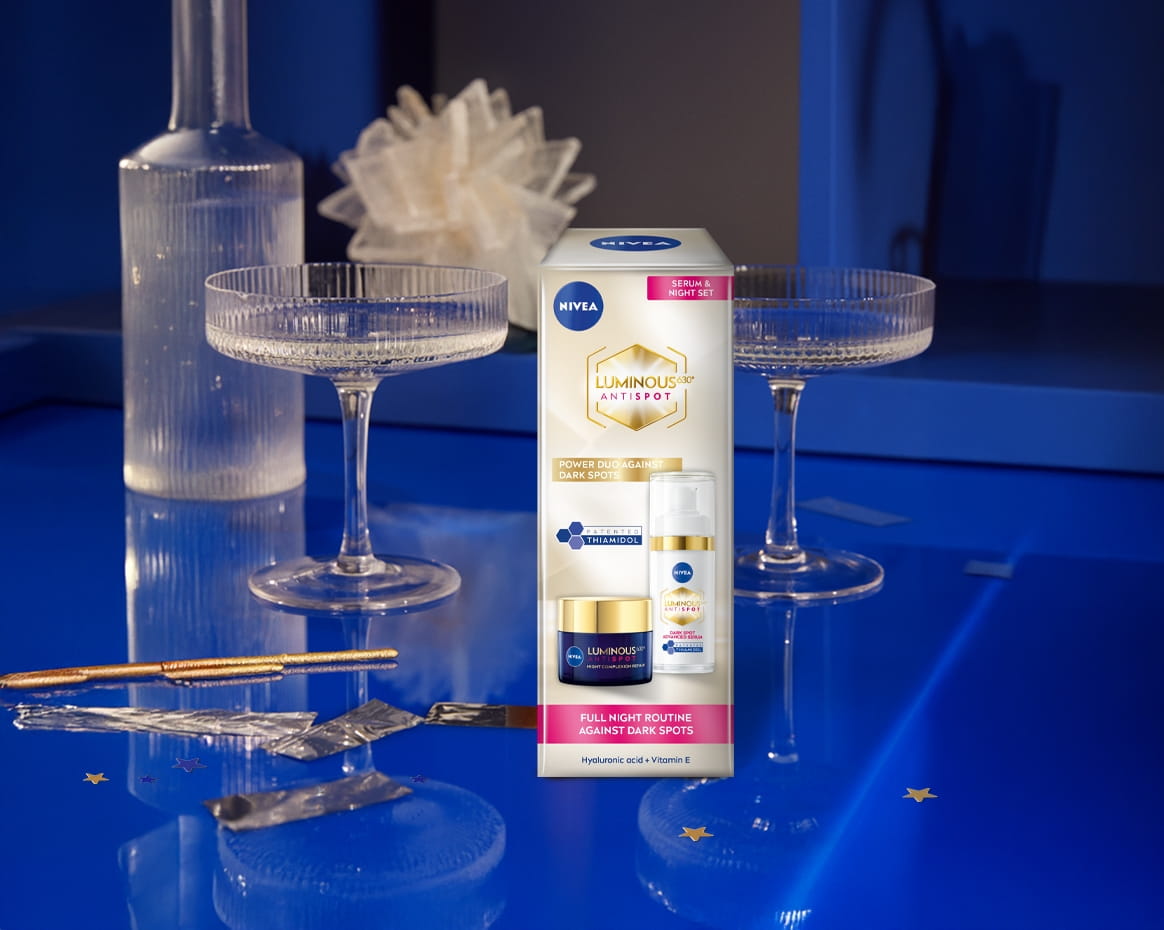 Daruiește un cadou special: setul NIVEALUMINOUS Duo Pack format din Serumul tratament avansat NIVEALUMINOUS630 și Crema de noapte regeneratoare NIVEALUMINOUS630.