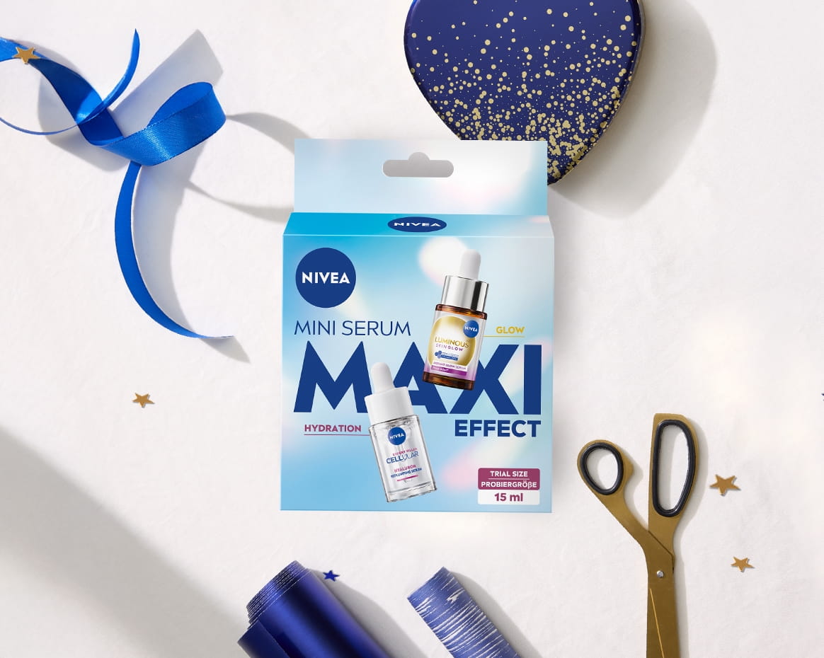 Dăruiește un cadou special: setul NIVEA Try me love me format din Serumul pentru luminozitate NIVEALuminous630® Skin Glow și Serumul antirid NIVEA® Cellular Expert Filler.