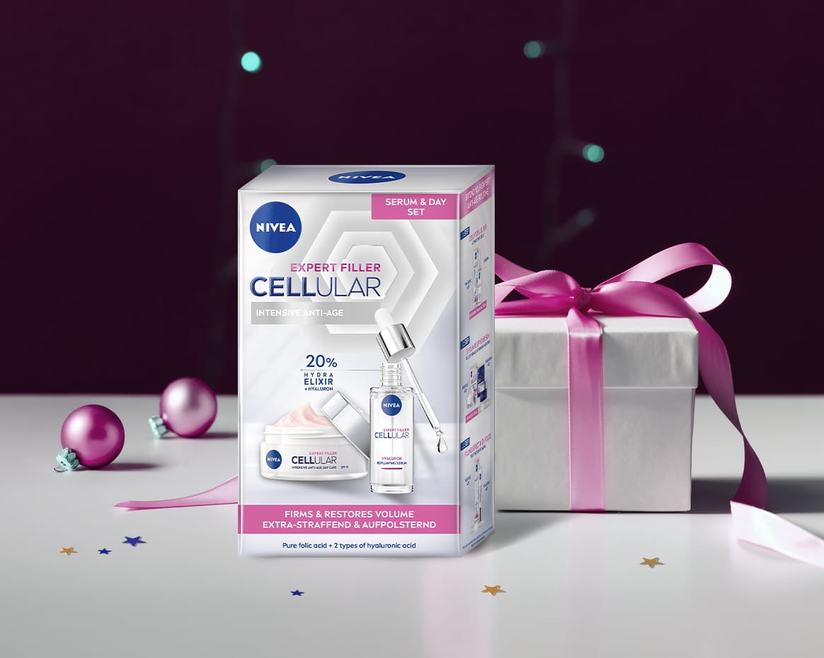 Dăruiește un cadou special: setul NIVEACELLULAR Duo Pack format din Serumul antirid NIVEACELLULAR Expert Filler și Crema de zi antirid NIVEACellular Expert Filler SPF 15.