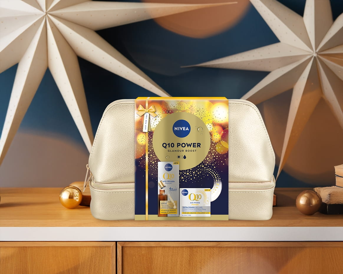 Dăruiește un cadou special: setul NIVEA Q10 POWER format din Crema de zi antirid NIVEA Q10 POWER cu SPF 15 și Serum antirid și anti-glicaţie NIVEA® Q10 Anti-Wrinkle Expert.