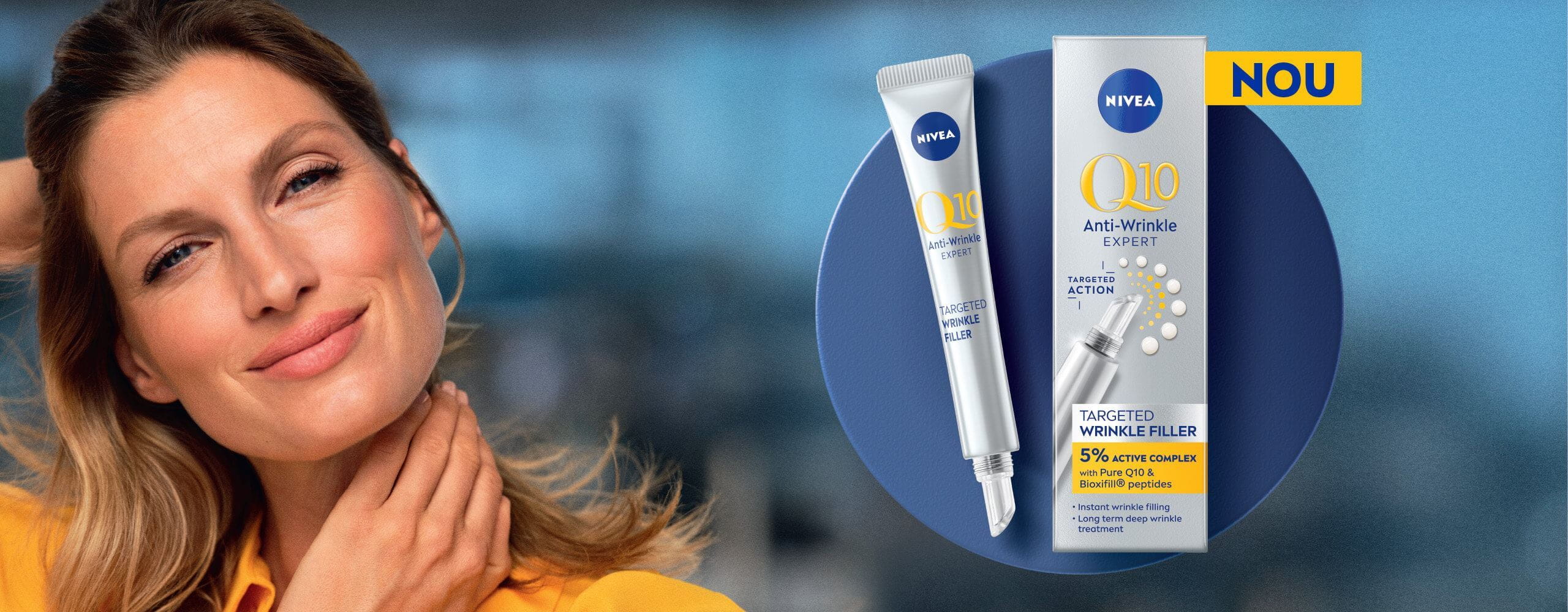 Descoperă gama completă de produse NIVEA Q10, create pentru fiecare tip de ten. Folosește oricare dintre aceste produse în combinație cu serumul anti-rid Q10 Targeted Wrinkle Filler pentru rezultate optime.