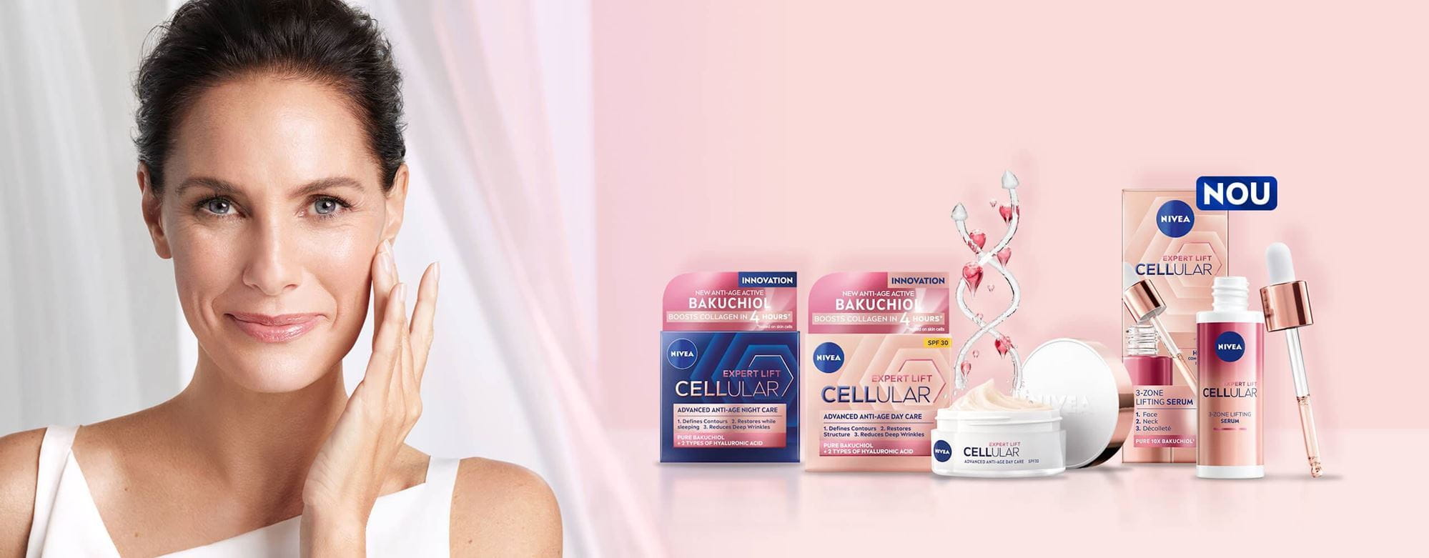 Definește-ți conturul feței și obține o piele cu aspect mai tânăr cu rutina de îngrijire zilnică CELLULAR Expert Lift.