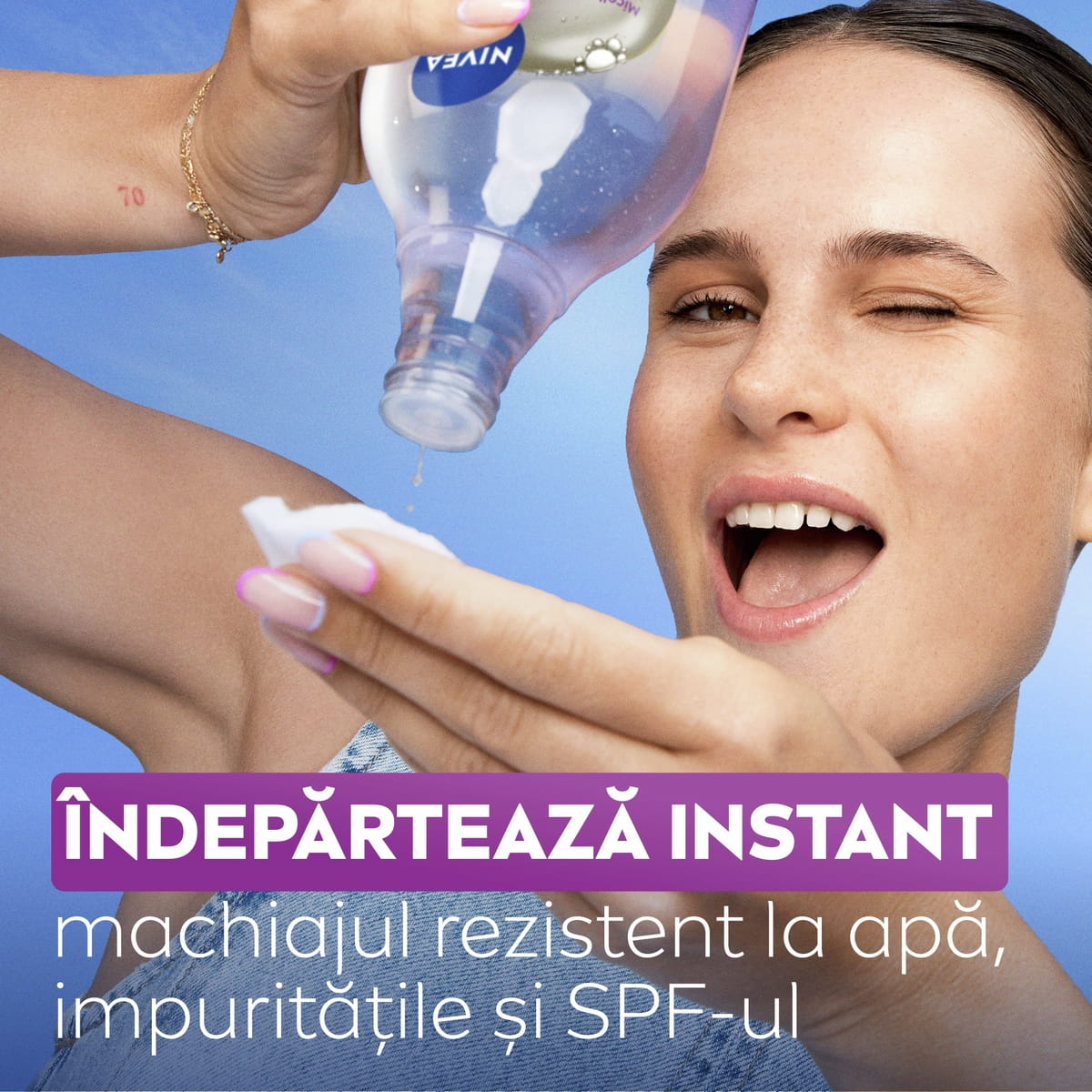 CURĂȚARE PROFUNDĂ – îndepărtează eficient machiajul rezistent, impuritățile, murdăria și SPF-ul, fără a lăsa reziduuri.