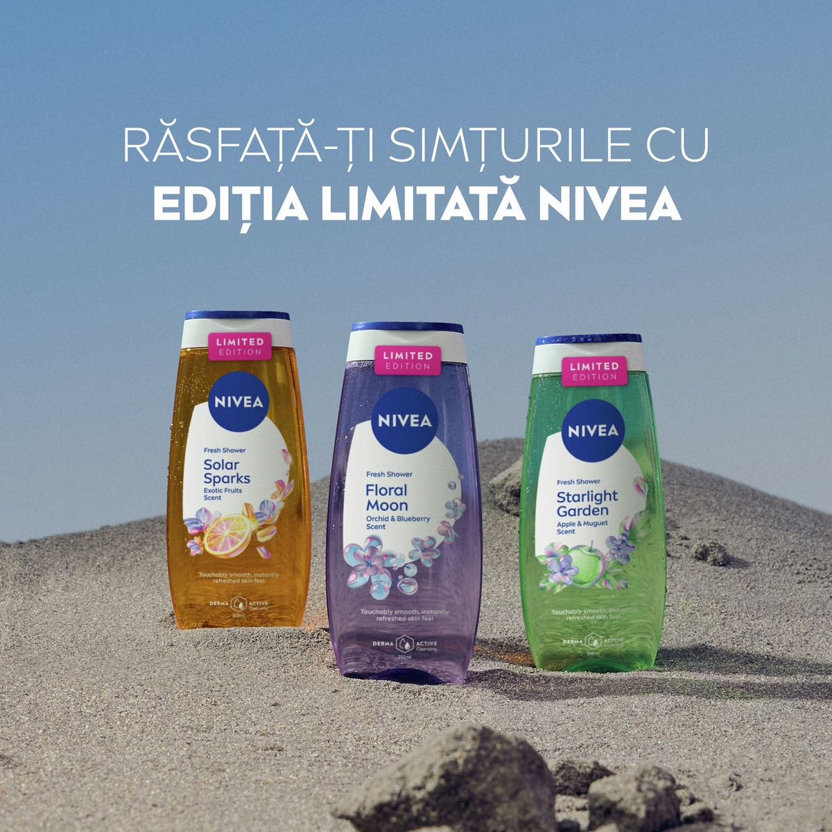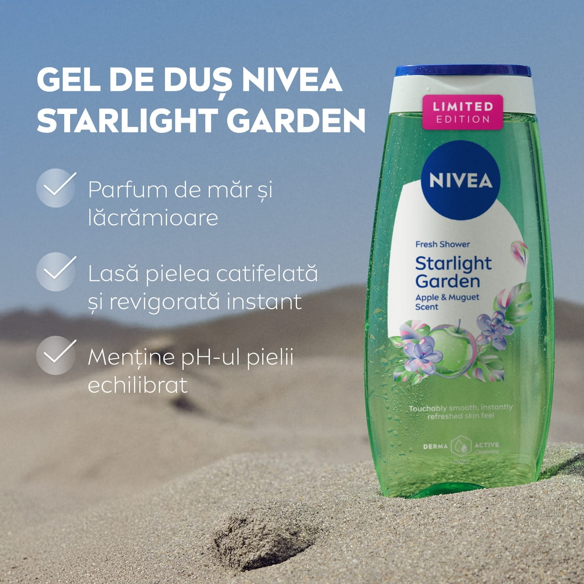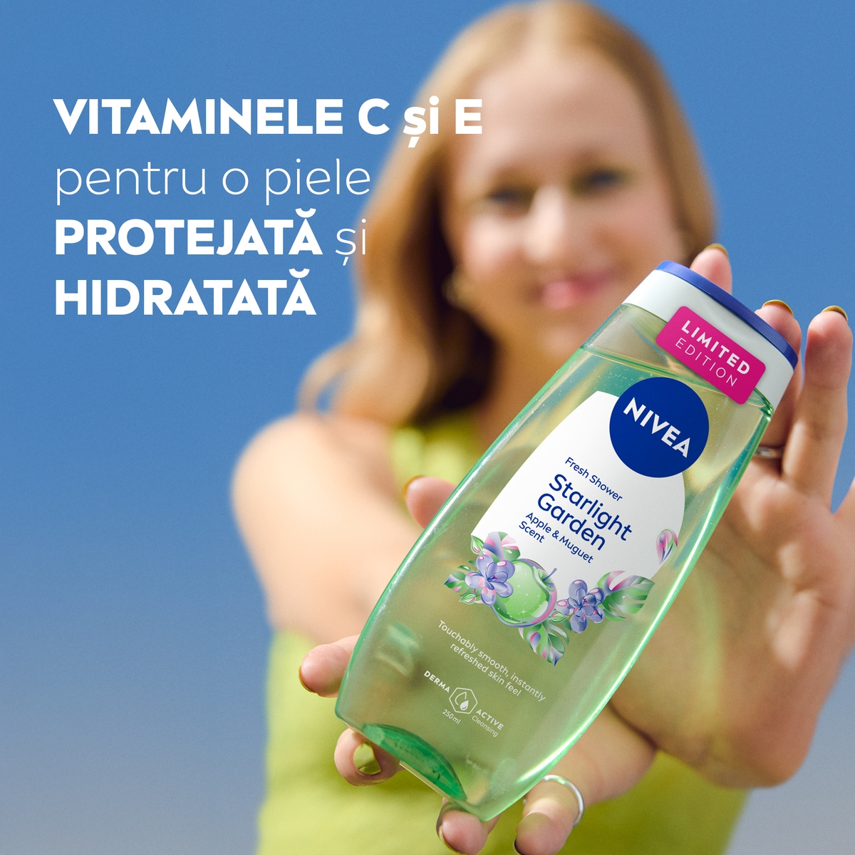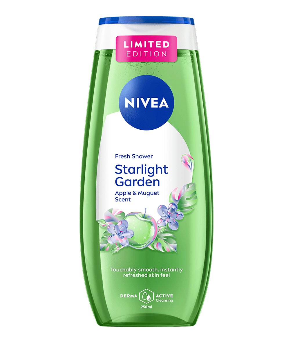 Pornește într-o evadare futuristă și lasă-te învăluită de parfumul revigorant de măr și lăcrămioare cu Gelul de duș NIVEA Starlight Garden.