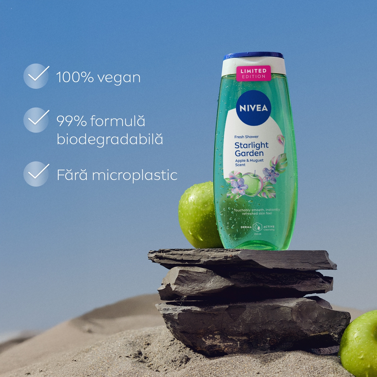 NIVEA are grijă de pielea ta și de planetă – cu o formulă biodegradabilă în proporție de 99 % și fără microplastic.
