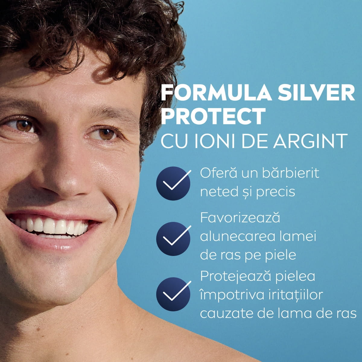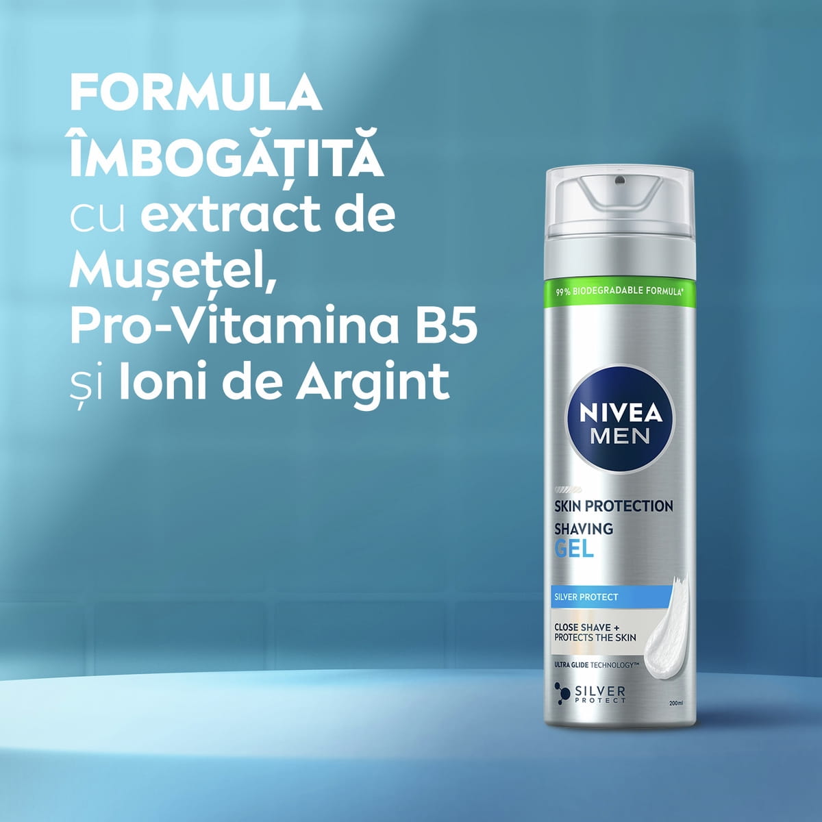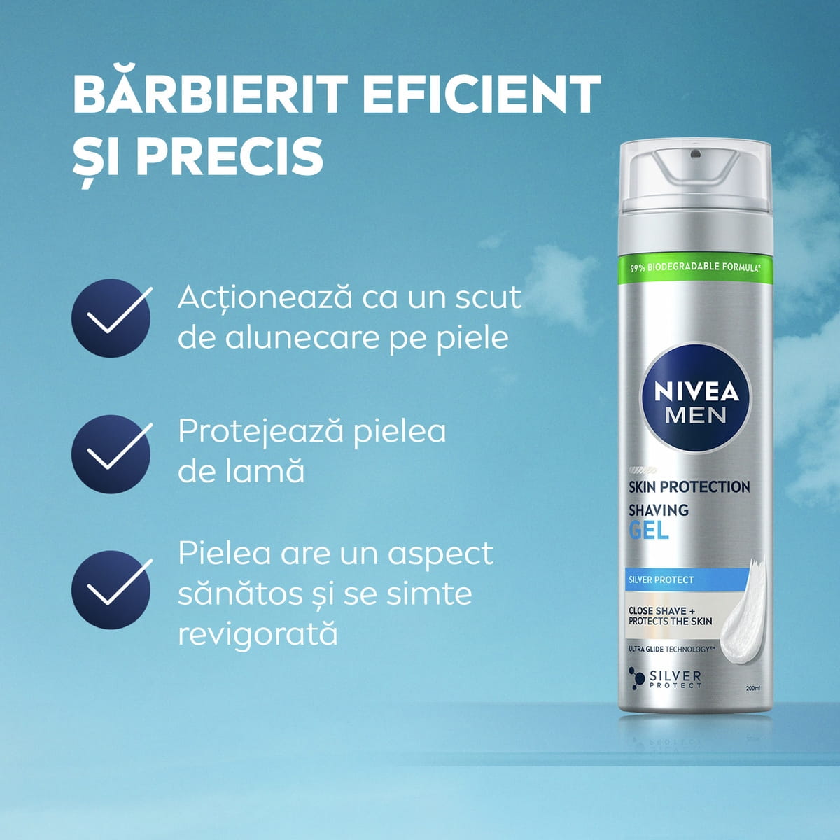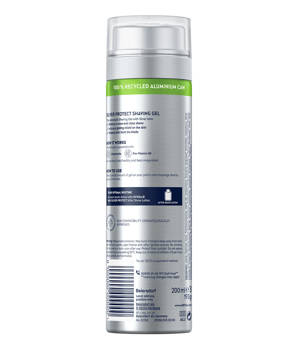 Încearcă gelul de ras NIVEA MEN Skin Protection pentru cele mai bune rezultate atunci când te bărbierești! Formula cu Pro-Vitamina B5 și tehnologia Silver Protect cu ioni de argint protejează pielea și oferă o alunecare eficientă a lamei.