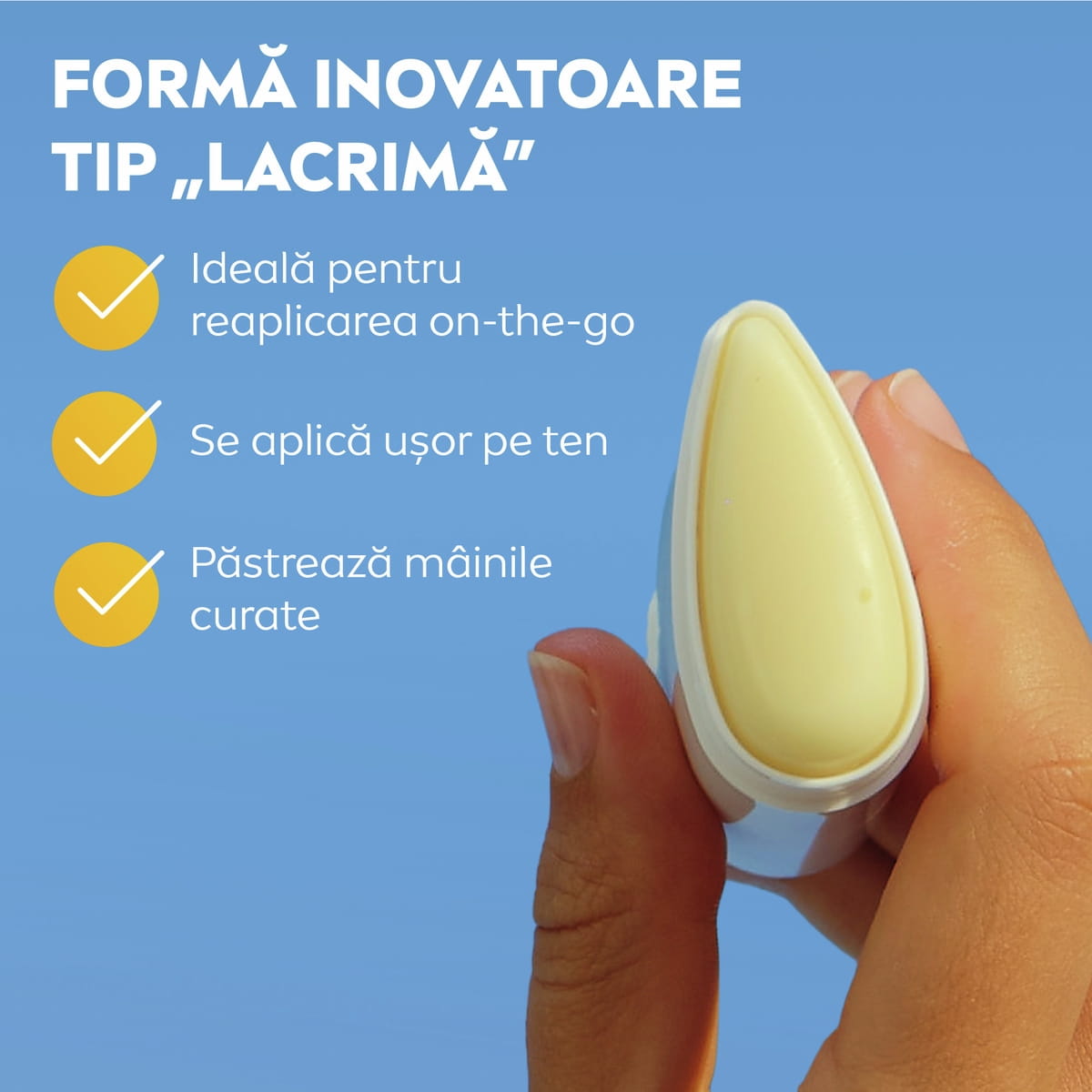 - PROTECȚIE PENTRU ZONELE DELICATE ALE FEȚEI – Formulă fără parfum, rezistentă la apă și transpirație, nu irită ochii și are o formă tip „lacrimă”, ideală pentru aplicarea precisă și ușoară.